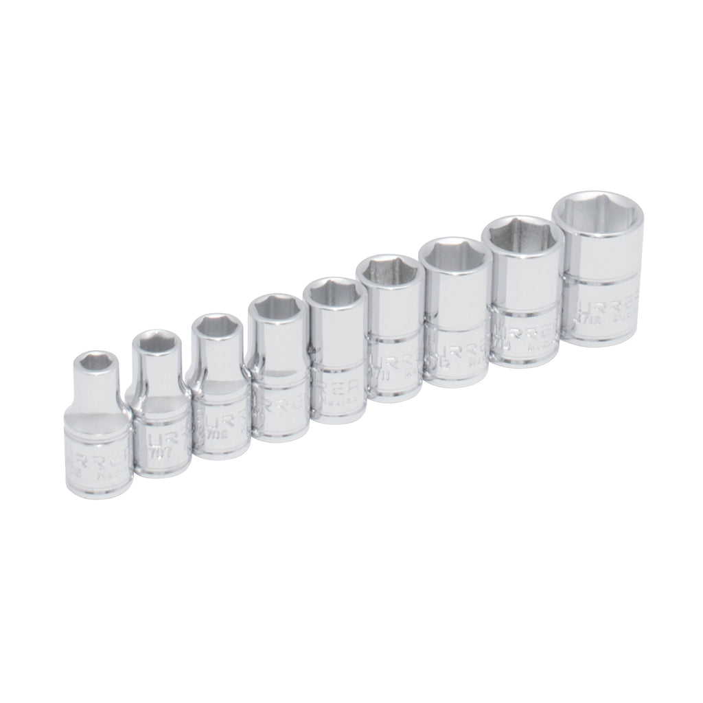 Juego de 9 Dados Cortos Cromados Estándar Cuadro de 1/4" Urrea 47204