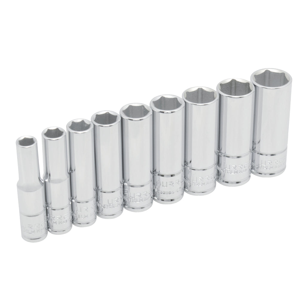 Juego de 9 Dados Largos Cromados Estándar Cuadro de 1/4", Urrea 47202