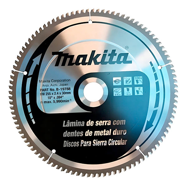 Sierra Circular 10" x 1-3/16" x 100 Dientes, 0 P/Alum. C/Reductor 1", Makita B-19788